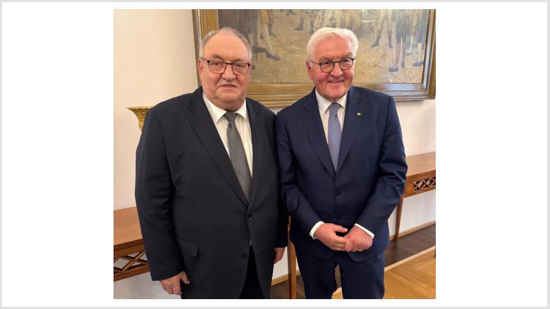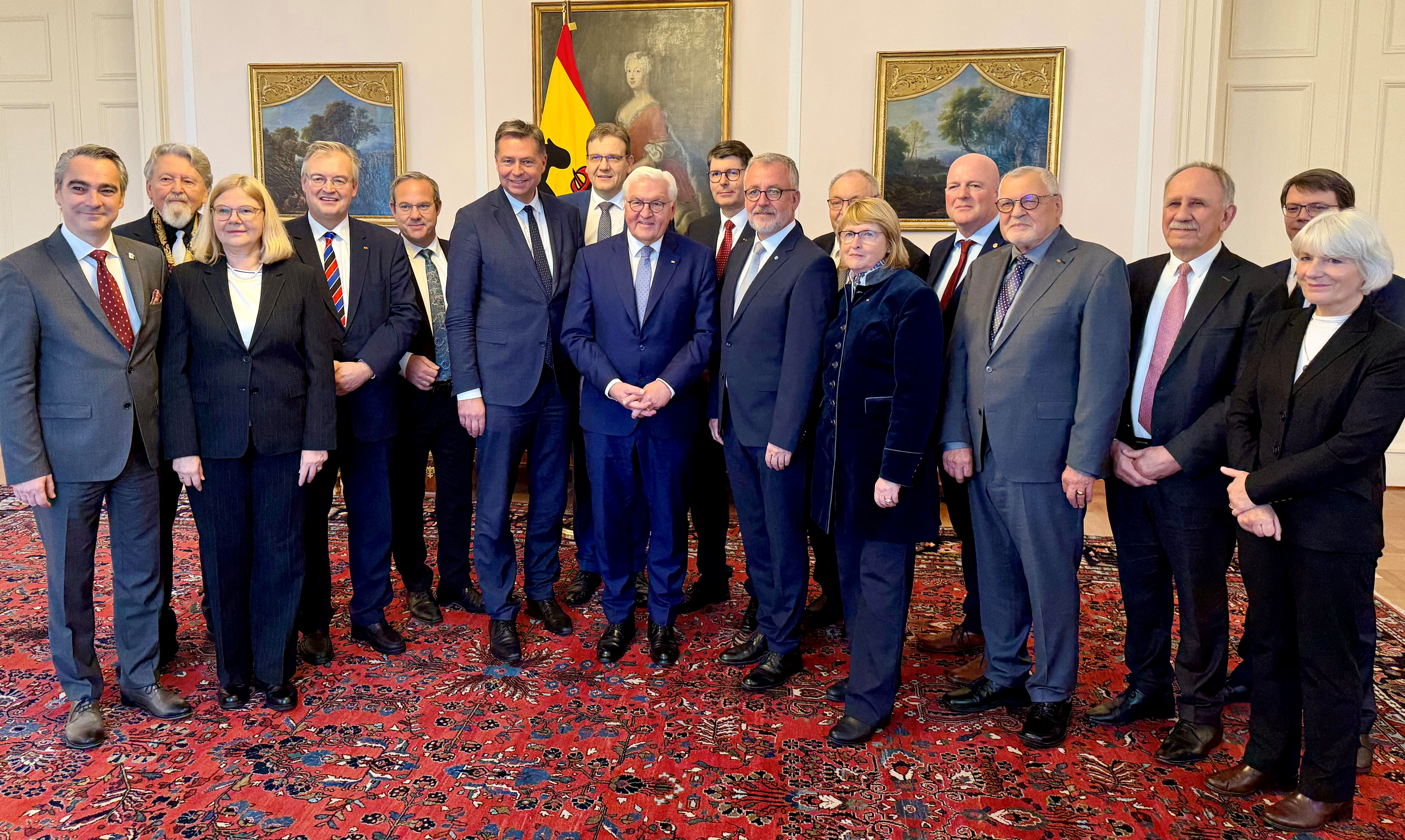 Als Vizepräsident des Bundes der Vertriebenen (BdV) ist der Bundesvorsitzende der Union der Vertriebenen, Aussiedler und deutschen Minderheiten der CDU und CSU (UdVA), Egon Primas, gemeinsam mit dem BdV-Präsidium am 17. November 2025 zu einem Austausch mit Bundespräsident Dr. Frank-Walter Steinmeier im Schloss Bellevue zusammengetroffen. Der Bundespräsident stellte eine familiäre Verbundenheit zum Thema Flucht und Vertreibung her und zeigte sich interessiert an der Lage der deutschen Minderheiten, der Bildungsarbeit des BdV und den Entwicklungen in den Herkunftsregionen.